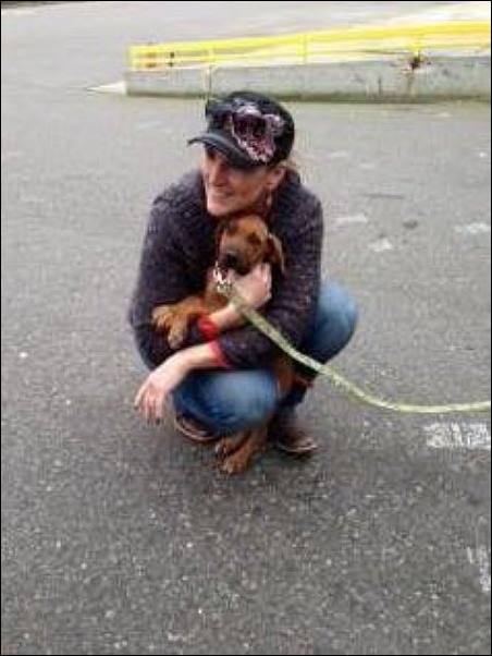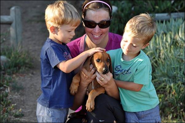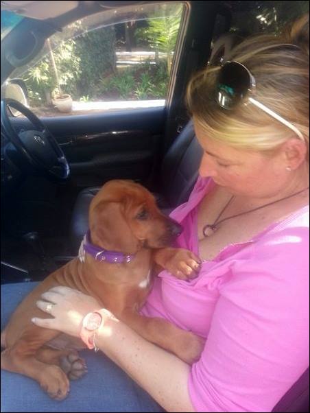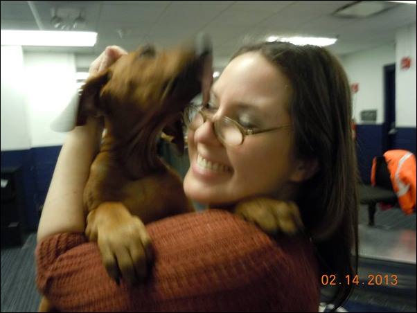 Sam lives with Katie and Alfred in the USA (here with Katie)